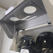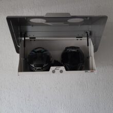 IL PORTA CASCHI FT HELMET, RISPETTO GLI ALTRI DUE MODELLI PRESENTI SUL SITO, HA UNA CHIUSURA BASCULANTE CHE PERMETTE DI ALLOGGIARE DUE CASCHI INTEGRALI TENENDOLI LONTANI DA POLVERE E INTEMPERIE.