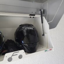 IL PORTA CASCHI FT HELMET DISPONE DI DUE CILINDRI CHE NE AGEVOLANO L’ APERTURA E LA CHIUSURA A ROTAZIONE.